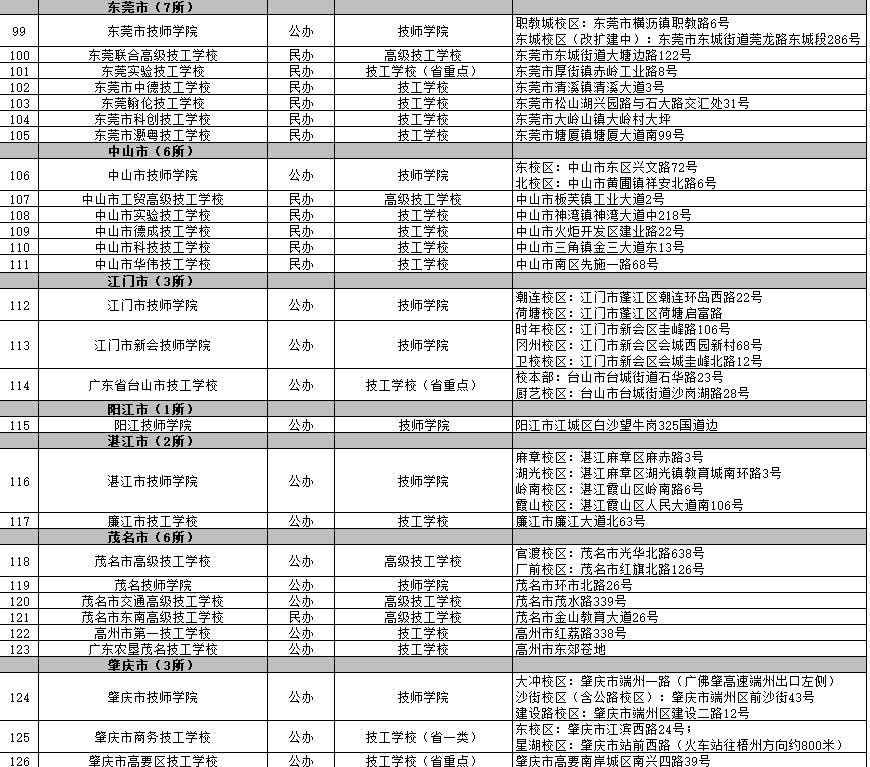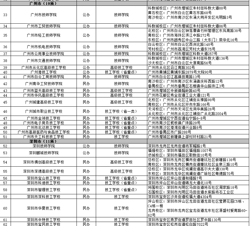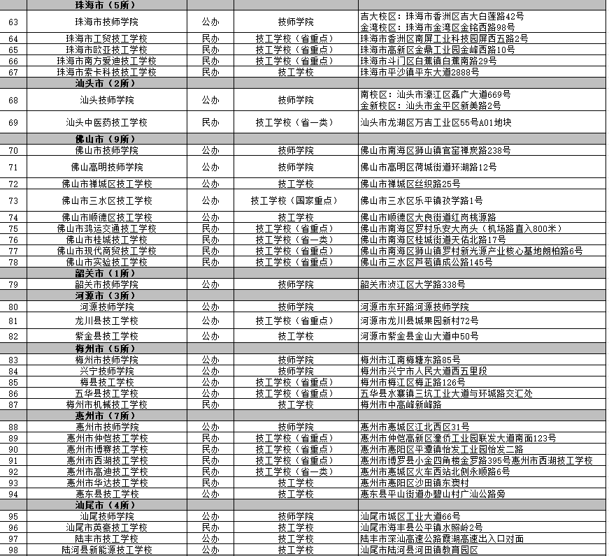 廣東138所具備招生資質(zhì)技工院校名單: